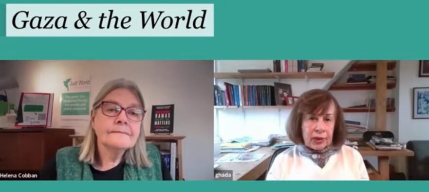On November 11, JWE president Helena Cobban sat down (virtually) with the veteran British-Palestinian justice activist Dr. Ghada Karmi in the latest episode of our video podcast series “Gaza & the World.”